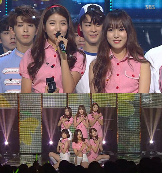 24일 방송된 SBS '인기가요'에서는 여자친구가 원더걸스, 씨스타 선배들을 제치고 1위를 차지했다.
