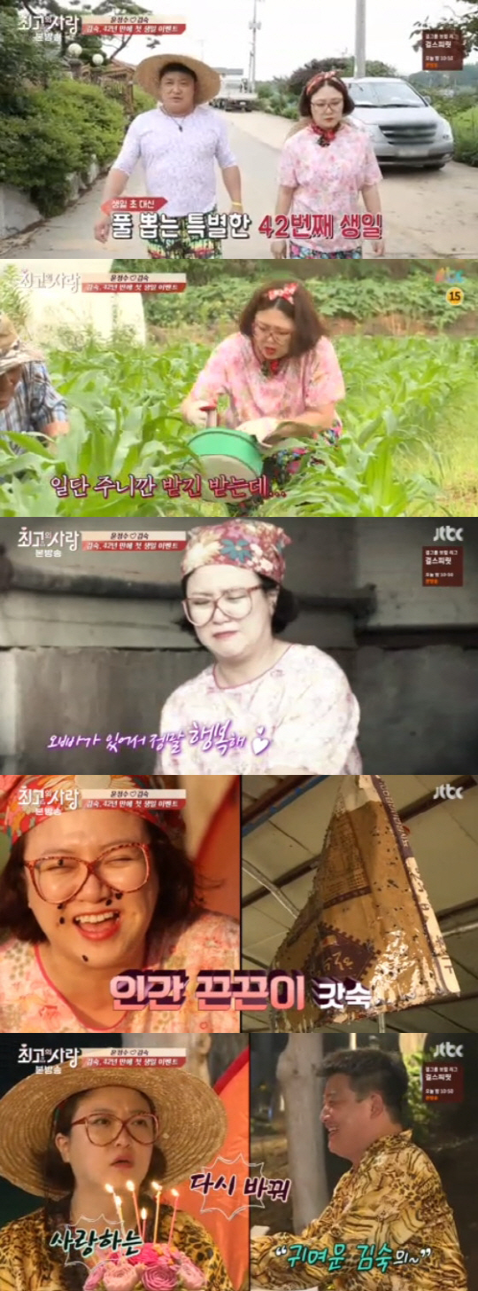 26일 밤 방송된 JTBC '님과 함께 시즌2-최고(高)의 사랑'에서는 생일을 맞이한 김숙과 그를 위해 이벤트를 준비한 윤정수의 모습이 그려졌다.