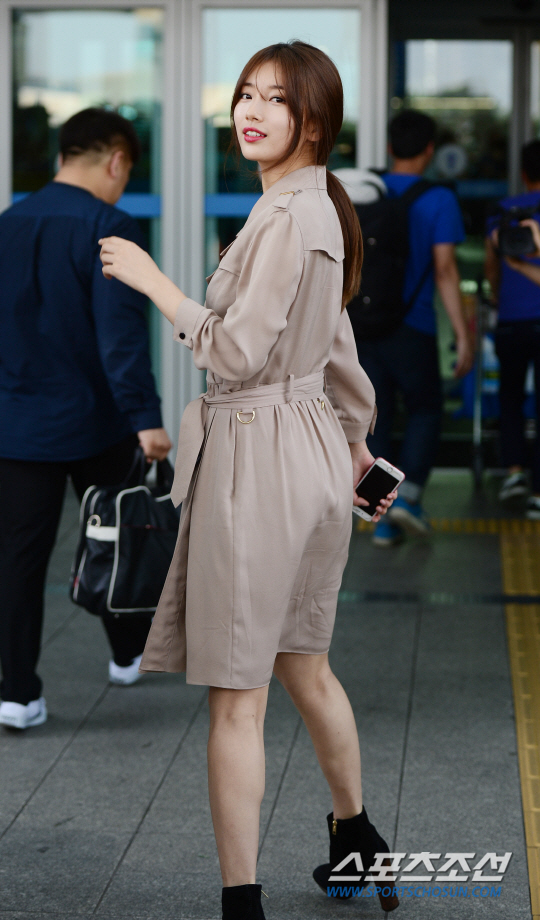 국민 첫사랑 수지는 얇은 소재의 트렌치 코트를 원피스처럼 미니멀하게 연출했다. 얇은 소재, 흐르는 듯한 실루엣이 몸매를 드러내며 섹시한 분위기를 자아낸다. 또 더운 여름에 맞게 코트만 입은 듯이 연출하여 더워 보이지 않게, 하지만 트렌치 코트가 같은 서정적인 분위기는 살리며 날씨를 '지배'하는 패션을 선보였다.