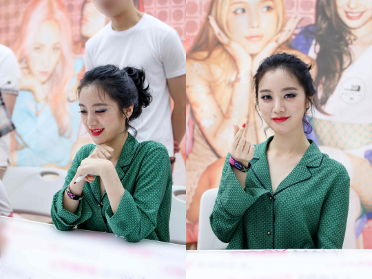 마지막으로 혜림은 막내답게 가장 컬러풀하고 캐주얼한 패션을 보여줬다. 혜림은 그린 컬러의 강한 패턴이 들어간 파자마 셔츠로 생동감 넘치는 스타일링을 연출했다. 또한 요즘 유행하는 와이드 커프스를 잘 소화해내며 여리여리한 느낌까지 줬다. 여기에 멤버들 중 유일하게 팬츠를 입었는데, 정돈되지 않은 컷팅의 데님 팬츠로 자유분방하고 스타일리시한 쇼츠 스타일링을 보여줬다.
