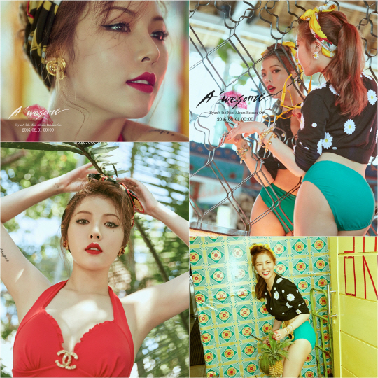 현아는 27일 오전 공식 SNS를 통해 미니 5집 '어썸(A'wesome)'의 2차 재킷 이미지를 공개했다. 인도네시아 발리의 뜨거운 햇살을 그대로 옮긴 듯한 이번 컴백 이미지는 앞서 1차 공개된 현아의 '퓨어섹시' 컨셉트 화보보다 한층 생동감 넘치는 에너지가 눈길을 사로잡는다.