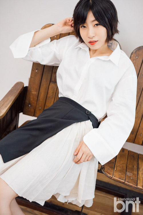 화보와 함께 진행된 인터뷰에서 그는 대세답게 능수능란한 언변으로 자신의 이야기를 풀어나갔다. 첫 데뷔를 개그우먼이 아닌 리포터로 데뷔했다던 그는 "Mnet '와이드 연예뉴스' 리포터로 2년 동안 활동하게 되었지만 스포트라이트를 받을 수 있는 직업은 아니었다. 그래서 뭔가 답답했고 해소가 되지 않더라"고 당시 마음을 전했다.