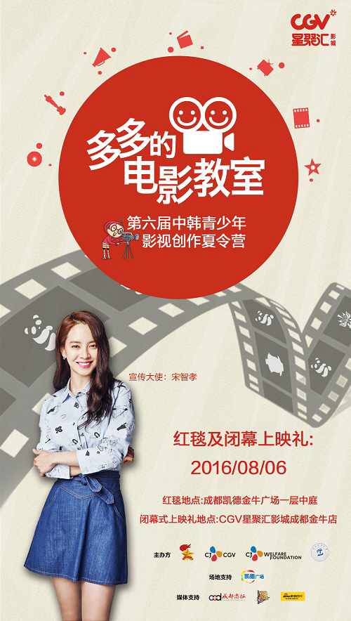 [스포츠조선 고재완 기자] CJ CGV가 '2016 중국 토토의 작업실'을 통해 청소년들의 꿈과 희망을 응원한다. 올해 행사에는중국에서 뜨거운 인기를 얻고 있는 한류스타 송지효가 특별 멘토로 참석해 한중 청소년과 의미있는 만남을 가진다.