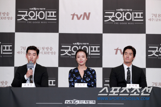 '굿와이프'는 동명 미국 드라마를 리메이크한 작품으로, 승승 장구 하던 검사 남편 이태준(유지태 분)이 스캔들과 부정부패 의혹으로 구속되고 결혼 후 일을 그만뒀던 아내 김혜경(전도연 분)이 가정 생계를 위해 서중원(윤계상 분)의 로펌 소속 변호사로 복귀하면서 자신의 정체성을 찾아가는 법정 수사극이다. 매주 금,토 오후 8시 30분 방송.