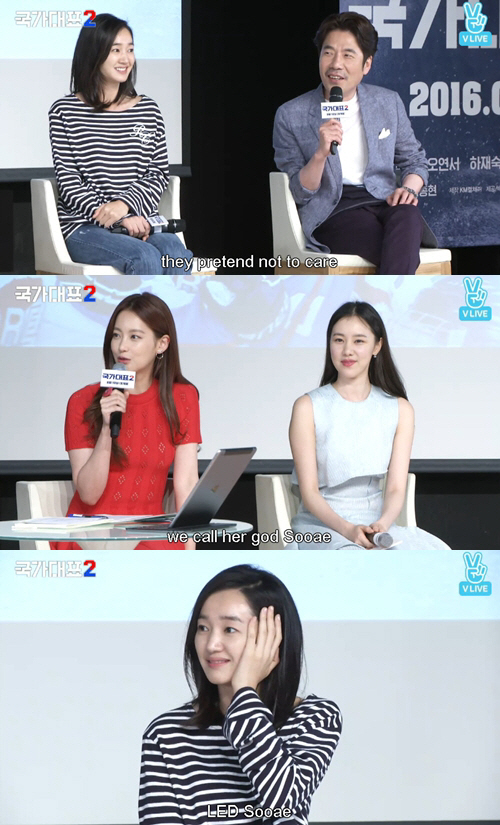 오연서는 "수애는 메이크업을 안 해도 예쁘다. 너무 아름다워서 갓수애라고 불렀다"고 설명했고, 김예원은 "수애는 어두운 조명에서도 혼자 살아남는 미모"라고 극찬했다.
