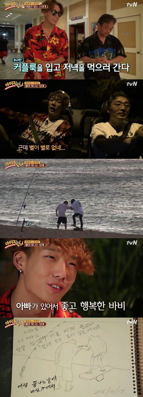 숙소로 돌아온 바비는 침대 위에 놓여진 그림을 발견했다. 이는 '여행 중 가장 기억에 남았던 추억을 그림으로 그려달라'는 제작진의 요청에 아버지가 직접 그림을 그린 것이었다. 이에 아버지는 바비와 자신의 모습을 그렸다. 일몰을 보기 위해 갔던 바닷가에서 바비는 널빤지 위에 올라가 비틀거렸고, 아버지는 아들의 손을 옆에서 꼭 잡아줬다. 아버지는 이 모습을 그림으로 그렸다. 그림과 함께 아버지는 '힘들고 어려울 때 아빠는 항상 옆에서 너를 지켜준다. 절대 손을 놓지 않을 거야'라는 멘트를 덧붙여 감동을 안겼다.