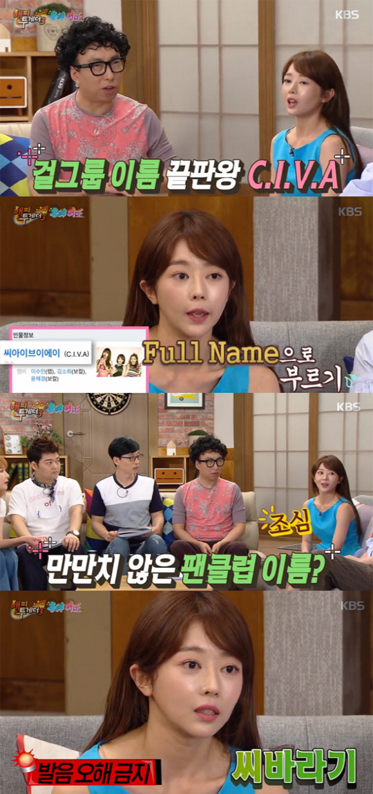 '해피투게더 C.I.V.A 이수민이 그룹 후보군들을 공개하며 재미를 선사했다.