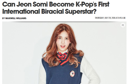 LA위클리는 29일(한국 시각) "전소미는 K팝의 첫 국제적 혼혈 수퍼스타가 될 수 있을까"라는 기사를 통해 '식스틴', '프로듀스101'을 거치며 증명된 전소미의 스타성과 향후 JYP의 K팝 아티스트로서의 가능성에 대해 긍정적인 전망을 내놓았다.