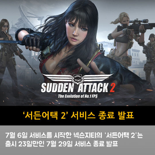 7월 6일 서비스를 시작한 넥슨지티의 '서든어택 2'는 출시 23일만인 7월 29일 서비스 종료 발표