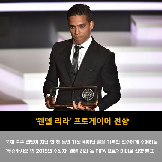 국제 축구 연맹이 지난 한 해 동안 가장 뛰어난 골을 기록한 선수에게 수여하는 '푸슈카시상'의 2015년 수상자 '웬델 리라'는 FIFA 프로게이머로 전향 발표