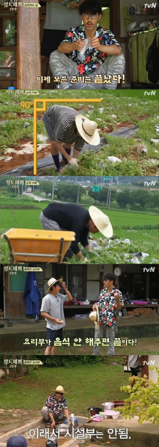 남주혁은 수박 따는 일을 맡았고, 유해진은 수박을 옮기는 일을 담당했다. 특히 생각보다 힘든 밭일에 유해진은 "기계는 없냐"고 묻거나, "'삼시세끼'야? '체험 삶의 현장이야?"라고 말해 웃음을 안겼다.