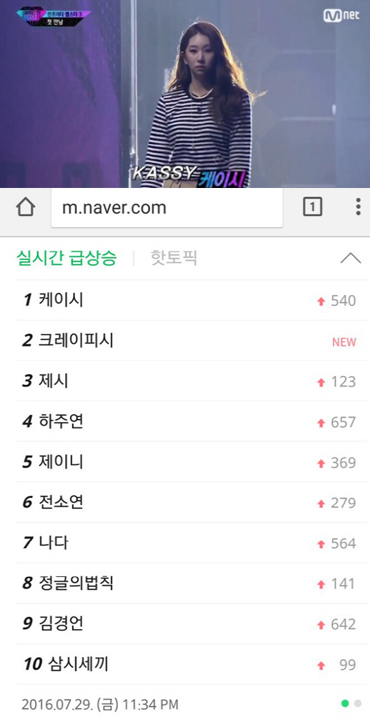 [스포츠조선닷컴 홍민기 기자] 가수 케이시가 '언프리티 랩스타3' 등장으로 검색어 1위에 이름을 올렸다.