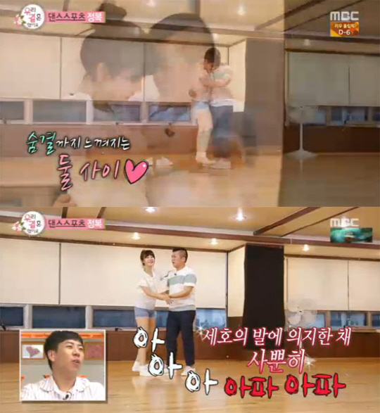 차오루는 신발을 벗고 조세호의 발등위로 올랐다. 두 사람의 밀착된 포즈가 완성됐고, 조세호는 긴장된 표정이 역력했다. 하지만 이 포즈는 오래가지 못했다.