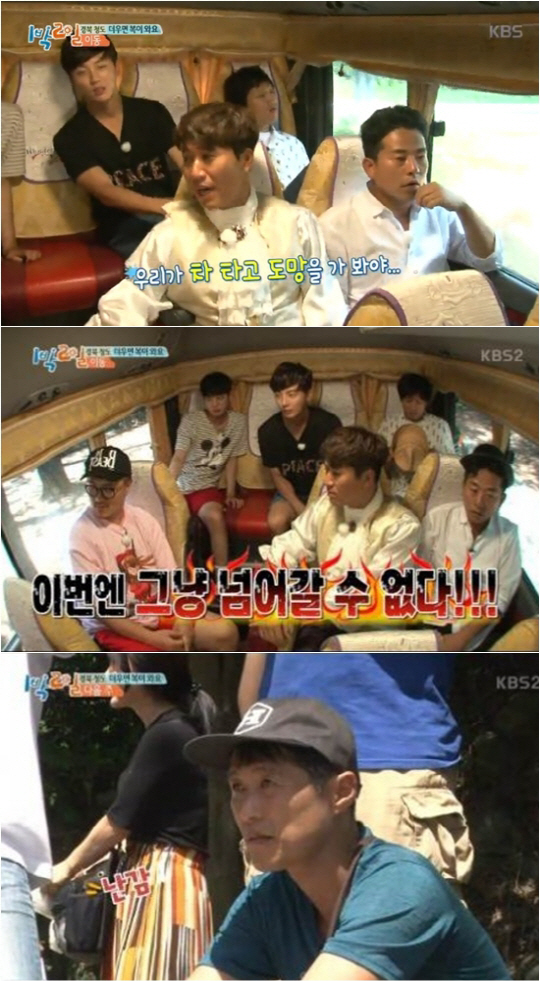 시청자에게는 웃음을 줬지만 한여름 땡볕 아래서 오랜시간 미션을 해야했던 멤버들은 지친 기색을 감추지 못했다. 또 미션에 실패한 멤버들은 용돈 한 푼 없는 관광에 나섰지만 더위와 공복에 신경은 날카로워졌다. 김종민은 시식용 복숭아를 먹다가 혼나기도 했다. 멤버들은 유PD의 융통성 없음을 탓하며 불만을 제기하기 시작했다.