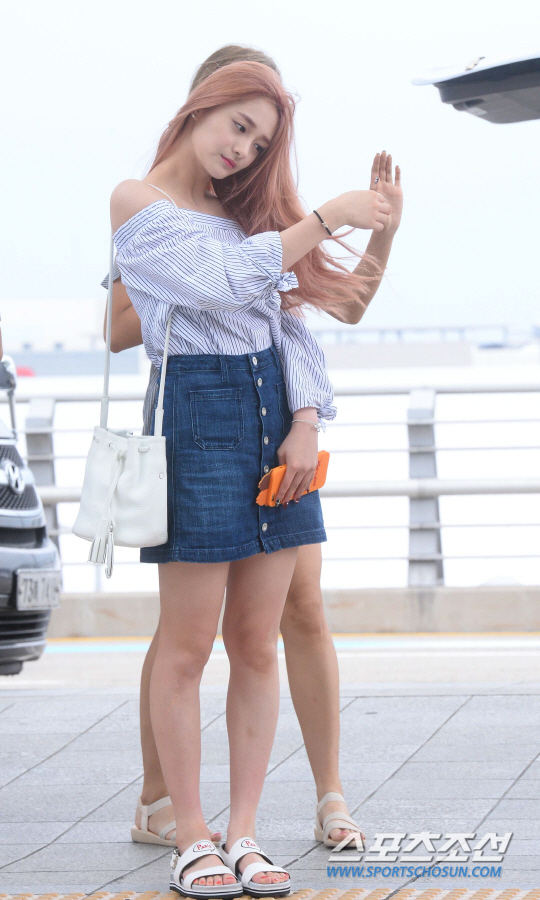 아이오아이의 정채연과 주결경은 소녀다운 발랄하고 귀여운 무드의 샌들 스타일링을 선보였다. 정채연은 순백의 원피스에 슬리퍼 형태의 샌들을 착용해 미니멀한 공항 패션을 연출했다. 화이트 컬러의 드레스와 화이트 컬러 샌들이 만나 청초한 느낌을 준다. 정채연은 디테일을 최대한 자제한 패션에 은은한 핑크 컬러 숄더백으로 러블리한 포인트를 주었다.