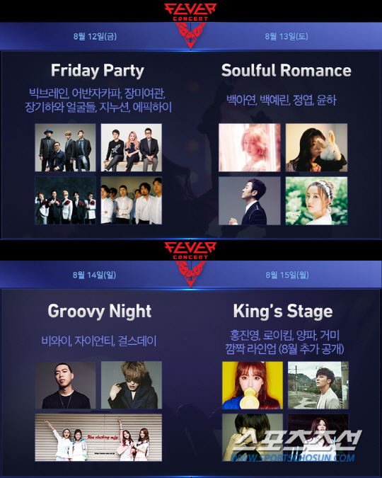 13일에는 '블소 토너먼트 코리아 파이널' 싱글전, 그리고 14일에는 태크매치 결승전이 각각 열린다. 현장 관람객들에겐 '앨리스와 이상한 나라', '명랑', '신규 의상' 등을 선물로 받을 수 있어 현장 티켓이 빠르게 팔리고 있다. 나흘 내내 콘서트도 함께 하는데 12일에는 어반자카파, 장미여관, 장기하와 얼굴들, 지누션, 에픽하이 그리고 13일에는 백아연, 백예린, 정 엽, 윤 하 등의 가수와 그룹이 공연을 펼친다. 이어 14일에는 걸스데이, 자이언티, 그리고 15일에는 거미, 양파, 로이킴 등이 무대에 오르며 한여름밤 콘서트를 방불케 한다.