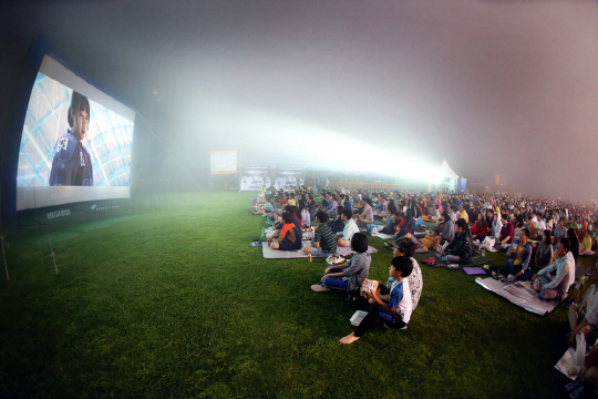 [스포츠조선 조지영 기자] 멀티플렉스 영화관 메가박스의 '마운틴 시네마'가 30일 휘닉스파크 몽블랑 정상에서 한국기록원으로부터 '국내에서 가장 높은 곳에 설치된 야외 영화관(해발 1050m)'으로 인증 받았다.