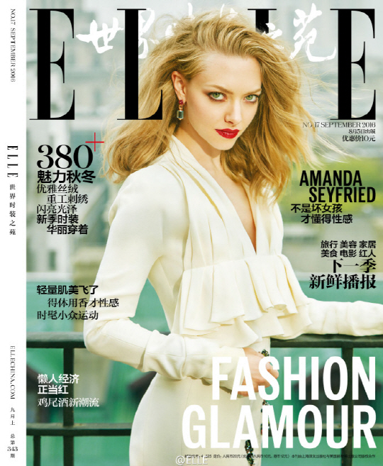 1일 패션지 '엘르 차이나'는 공식 웨이보를 통해 9월호 표지모델로 나선 아만다 사이프리드의 화보를 공개했다.