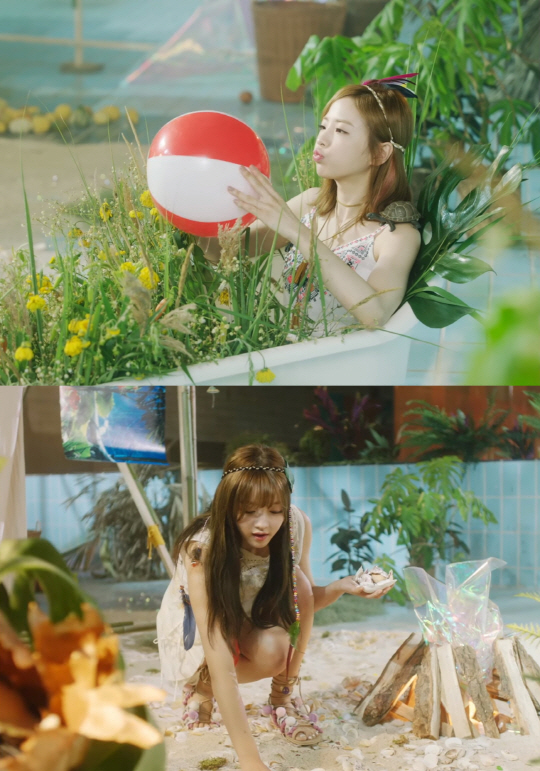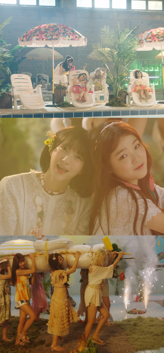 오마이걸 뮤비 속 주된 배경은 바로 수영장이다. 바다처럼 꾸며진 수영장에서 오마이걸은 조개, 모래, 풀, 꽃 등을 활용한 히피룩으로 눈길을 끈다. 특히 멤버들 대부분 하늘하늘한 소재의 옷들을 이용해 더욱 갸녀리고 순수한 소녀의 느낌을 냈다.