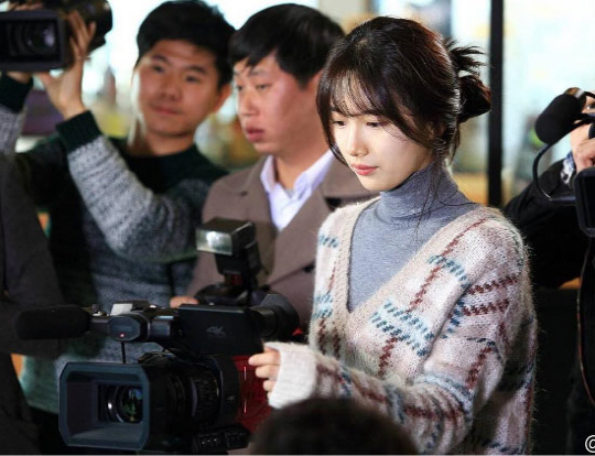 극중 노을 PD 역을 맡은 수지는 내추럴한 스타일로 카메라를 응시하고 있다.
