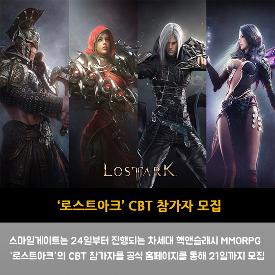 스마일게이트는 24일부터 진행되는 차세대 핵앤슬래시 MMORPG '로스트아크'의 CBT 참가자를 공식 홈페이지를 통해 21일까지 모집