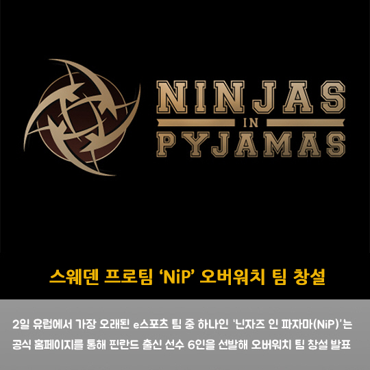 2일 유럽에서 가장 오래된 e스포츠 팀 중 하나인 '닌자즈 인 파자마(NiP)'는 공식 홈페이지를 통해 핀란드 출신 선수 6인을 선발해 오버워치 팀 창설 발표