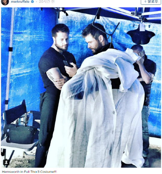 [스포츠조선 고재완 기자] 할리우드 배우 마크 러팔로가 '토르:라그나로크'(이하 토르3)의 촬영장 소식을 자신의 인스타그램을 통해 알려와 화제다.