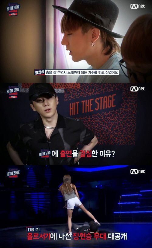 3일 밤 방송된 Mnet '힛 더 스테이지'에서는 비스트 탈퇴 후 처음으로 방송에 출연하는 장현승의 모습이 공개됐다.
