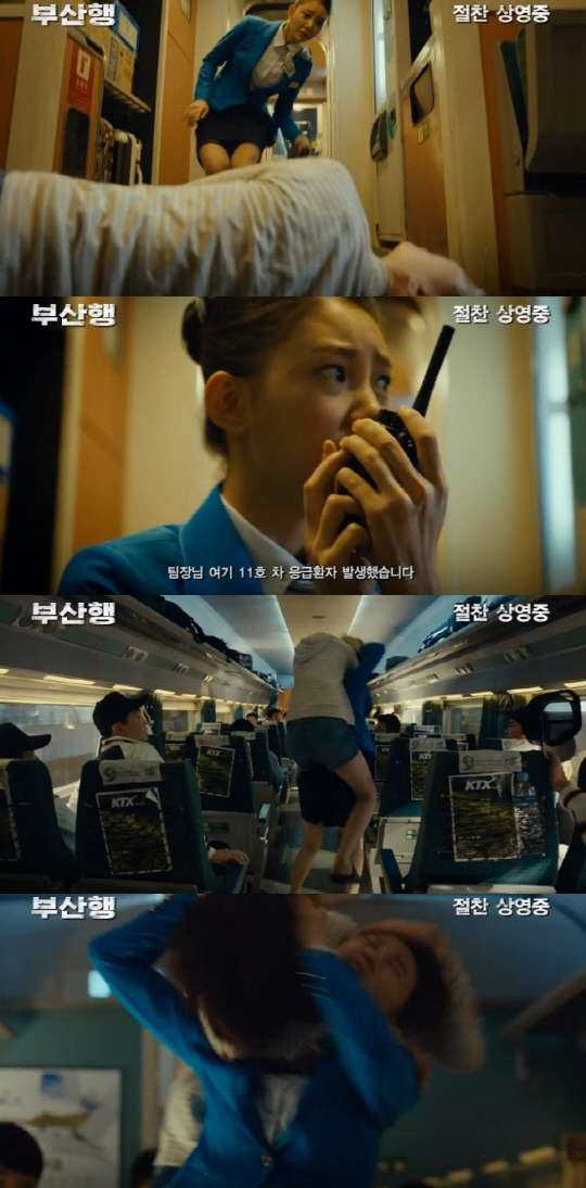 [스포츠조선 조지영 기자] 대한민국, 방방곡곡 쾌속 질주 중인 좀비 재난 블록버스터 '부산행'(연상호 감독, 영화사 레드피터 제작). 부산행 KTX에서 벌어진 전대미문 한 재난에 벌써 900만명의 관객이 빠져든 상태. 신선한 스토리, 탄탄한 연출, 그리고 펄떡이는 캐릭터들로 118분을 꽉 채운 '부산행'은 올해 첫 번째 1000만 돌파 영화로 내정됐다.