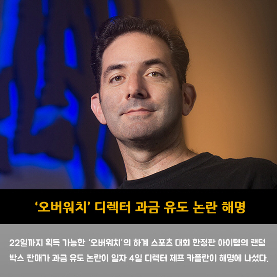 22일까지 획득 가능한 '오버워치'의 하계 스포츠 대회 한정판 아이템의 랜덤 박스 판매가 과금 유도 논란이 일자 4일 디렉터 제프 카플란이 해명에 나섰다.