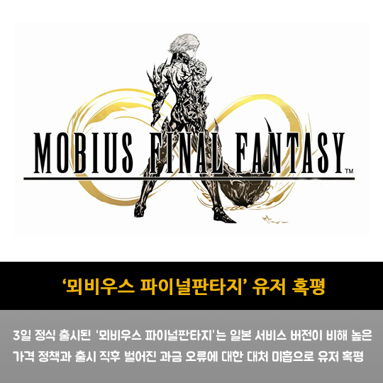 3일 정식 출시된 '뫼비우스 파이널판타지'는 일본 서비스 버전이 비해 높은 가격 정책과 출시 직후 벌어진 과금 오류에 대한 대처 미흡으로 유저 혹평