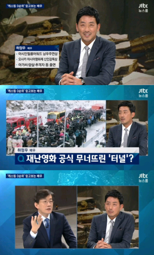하정우는 4일 방송된 JTBC '뉴스룸'에 출연해 손석희 앵커와 인터뷰를 진행했다.