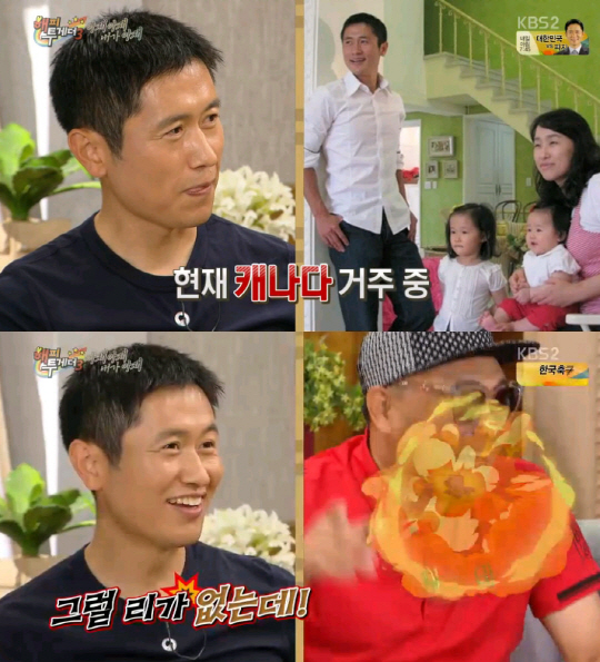 이영표는 최근 김흥국이 예능계의 대세로 떠오른 것에 대해 "현재 축구 지도자 연수를 위해 캐나다에 거주하고 있어서 전혀 몰랐다"며 "(소식을 듣고) 깜짝 놀랐다. 그럴 리가 없다고 생각했다"고 답해 김흥국에게 의문의 1패를 안겼다.