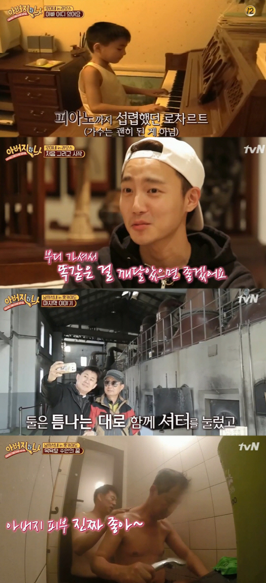 특히 부자는 밥을 먹기 전에도 함께 사진을 찍으며 추억을 쌓았다. 이어 잠자리에 들기 전 부자는 온천에 몸을 담궜다.