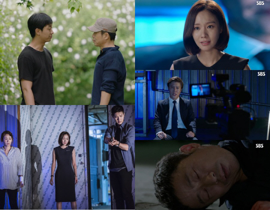 [스포츠조선닷컴 김준석 기자] '원티드'의 진범 이문식이 SG그룹 대표인 박호산의 칼에 맞고 쓰러졌다.