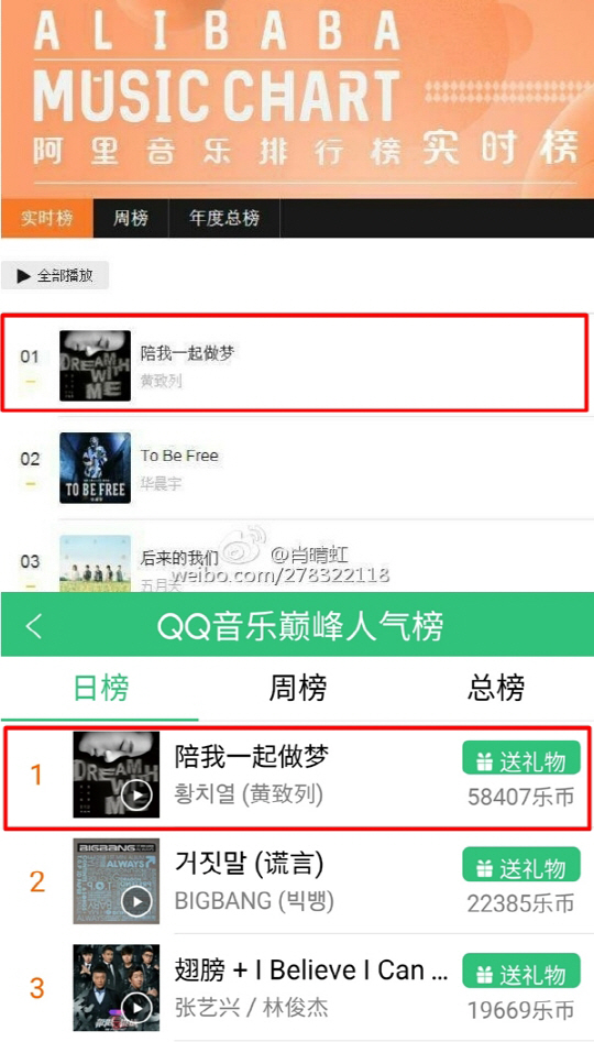지난 3일 자정에 공개된 황치열의 신곡 '나와 함께 꿈을 꾸다'는 발매 직후 중국 음악사이트 QQ뮤직과 알리바바 뮤직에서 1위를 차지하며 여전한 '황쯔에리' 열풍을 증명했다.