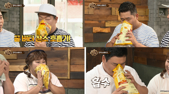 [스포츠조선닷컴 김준석 기자] 맛있는 녀석들이 감자칩 과자 봉지를 이용한 인공호흡법을 선보여 폭소를 자아냈다.