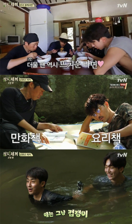 [스포츠조선닷컴 이지현 기자] '삼시세끼' 4인방이 '이열치열' 전법으로 무더운 여름을 이겼다.5일 방송된 tvN '삼시세끼 고창편'에서는 여름을 나는 다양한 방법이 선보여 눈길을 끌었다.
