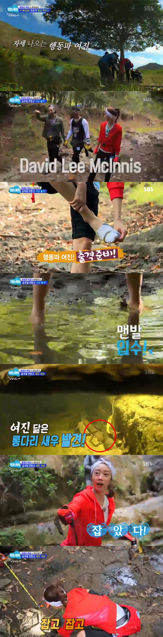 잠시후 최여진은 맥기니스와 박준형을 데리고 새우 사냥에 나섰다. 최여진은 직접 맨발로 입수해 물을 휘젓고 돌을 뒤집으며 새우를 찾았다.
