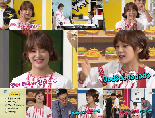 특히 김세정은 손짓을 동원한 귀엽고도 기발한 재치만점 보디랭귀지으로 시청자들을 폭소케 만들었다. 빵과 채소 주문을 순조롭게 이어가던 그가 "Onion cut very small.(양파는 잘게 썰어주세요)"이라더니, 손으로 칼질을 하는 듯한 제스처와 함께 "다다다다다~"를 외친 것. 이런 김세정의 생각지 못한 보디랭귀지와 표현법에 보는 이들은 그저 감탄할 수 밖에 없었다.