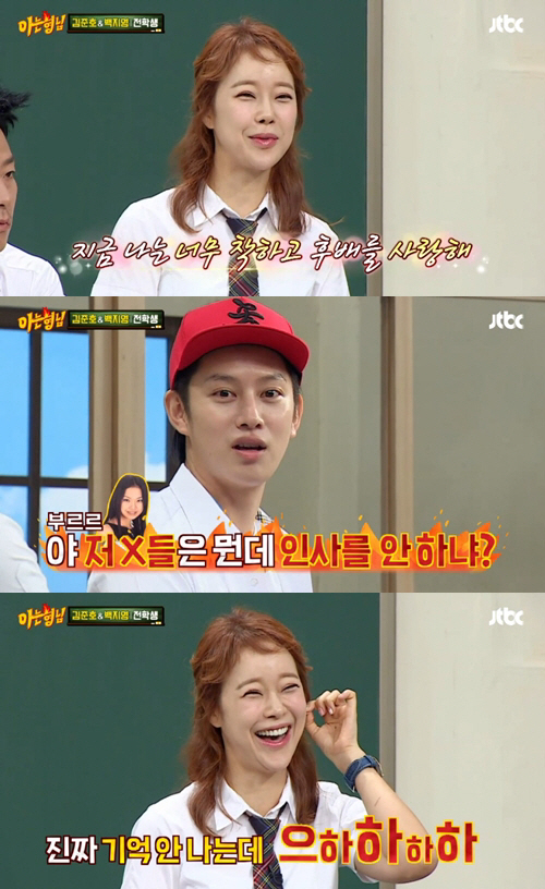 '아는형님' 백지영이 김희철의 폭로에 당황했다.