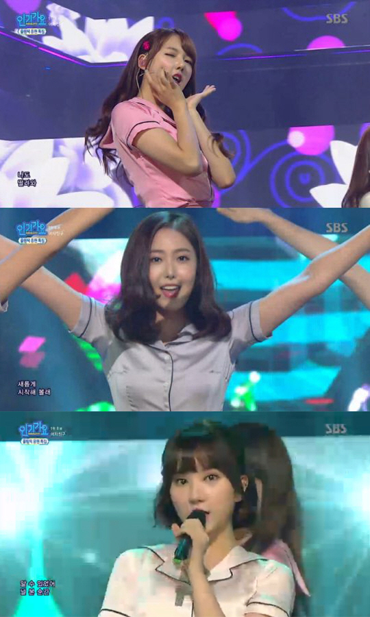 여자친구는 7일 SBS '인기가요'에서 '너 그리고 나'로 종합점수 점을 기록해 1위에 등극했다. 지난달 24일과 31일에 이어 3주 연속'인기가요' 1위 트로피를 석권했다.