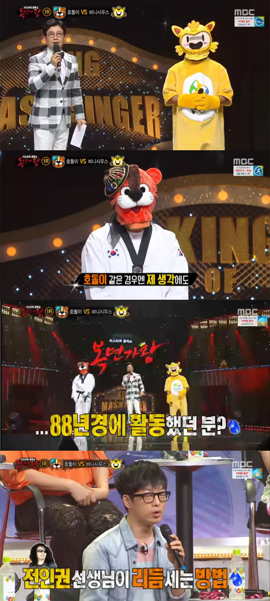 리우올림픽 특집으로 진행된 이날 '복면가왕'의 첫번째 대결은 88올림픽 호돌이와 2016리우올림픽 비니시우스의 대결이었다.