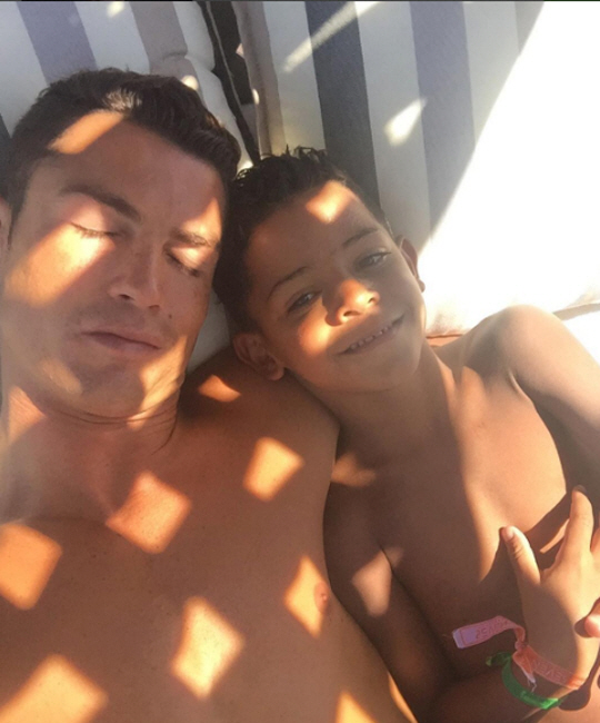 호날두는 7일 자신의 SNS에 "내 아들과 휴식중(Some rest with my boy)"이라는 글과 함께 아들 호날두 주니어와 덱 체어에 누운 사진을 올렸다.