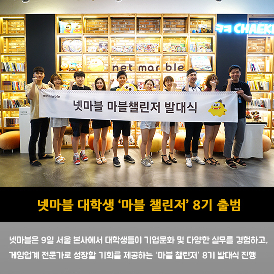 넷마블은 9일 서울 본사에서 대학생들이 기업문화 및 다양한 실무를 경험하고, 게임업계 전문가로 성장할 기회를 제공하는 '마블 챌린저' 8기 발대식 진행