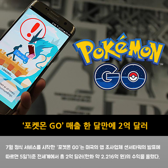 - '포켓몬 GO' 매출 한 달만에 2억 달러
