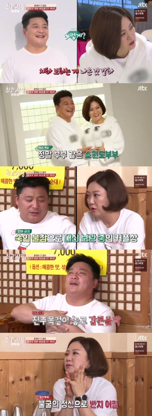 본격적인 촬영이 시작되자 김숙은 윤정수 옆에서 쉴 새 없이 포즈나 표정에 대한 코치를 하기 시작했다. 이에 윤정수는 투정을 부렸지만, 김숙은 "내가 화장품 CF가 처음이 아니지 않냐. 선배로서 말해주는 거다"라며 끝까지 조언해 웃음을 안겼다. 이어 윤정수와 김숙은 커플 촬영에서 손을 잡는 은근한 스킨십과 앞모습만 다정한 공식 포즈를 취하는 등 찰떡 호흡을 자랑했다.