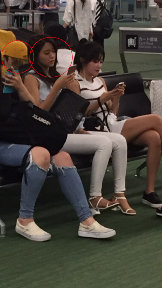 이날 설현이 속한 AOA는 싱글 앨범 프로모션차 김포국제공항을 통해 일본 도쿄로 출국했다. 설현은 AOA 멤버들과 함께 현장에 앉아있는 모습.