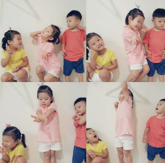 [스포츠조선닷컴 정안지 기자]축구 선수 이동국의 아들 대박이(이시안)와 딸 설아-수아가 깜찍한 애교를 선보였다.