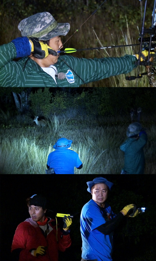 이날 김병만-현주엽-한재석 '아재 3인방'은 '현대 복합궁'이라 불리는 전문 활을 들고 뉴칼레도니아의 대표 골칫덩이로 불리는 야생 사슴을 겨냥한다. 뉴칼레도니아의 야생사슴은 원시림 형성을 방해하며 생태계를 파괴하고 있다고.